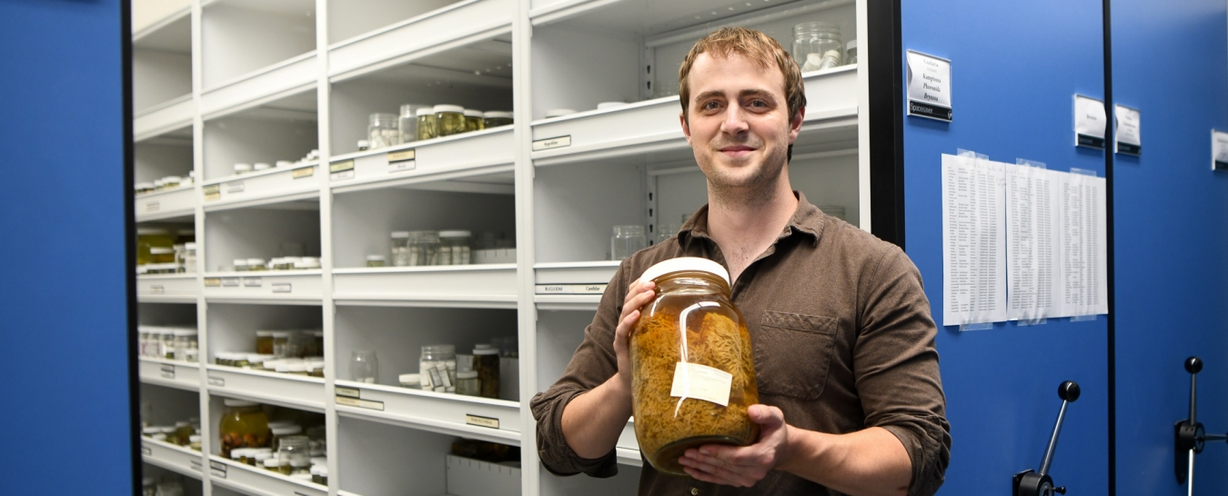 Henderson with dry specimens in the Invertebrate Zoology Collections