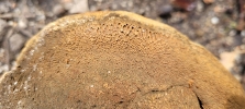 More complications follow. Because there aren't a lot of useful morphological 'key characteristics' available with specimens such as this (nor in most fungal fruit bodies for that matter), taxonomists turn to molecular markers that are able to distinguish genera and species with a high degree of accuracy. I reached out to Noah Siegel (co-author of Mushrooms of the Redwood Coast, and mycologist with an encyclopedic knowledge of fungi) for help. With the photos (but lacking molecular data), Noah responded with a possible identification: Fomitiporia (?)fissuratus, a more sophisticated guess than my own, but still not a positive id. Further complications (in case anyone is still reading...): Most conks in the relatively newly created genus Fomitipora were once classified as species of the genus Phellinus. Aha, Noah and I probably concur, based on the fact that the genus Phellinus has been split into additional genera, such as Fuscoporia and Fomitiporia. In conclusion, the mushroom in question here could be called Phellinus gilvus, Fuscoporia gilva, or Fomitipora (?)fissuratus.