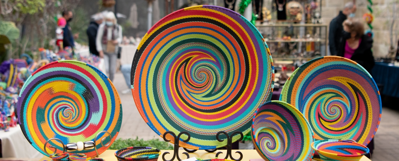 Friday through Sunday, turn the ordinary into the extraordinary with upcycled telephone wire baskets and bowls and other beautiful home décor featuring fair trade art from Zimbabwe, South Africa, and Kenya (2KG African Imports).