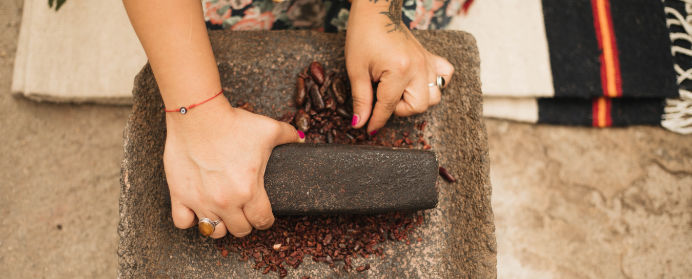 Join Bany Vargas for a hands-on workshop celebrating traditional Oaxacan ways of making chocolate. Explore the botany of cacao trees and learn about the cultural significance of cacao and chocolate. Roast organic Oaxacan cacao beans over a clay comal, peel them, and grind ingredients with a handmill or metate. Mold your chocolate and take it home, if you can resist eating it that long! Enjoy a prepared chocolate drink at the end of the workshop.
