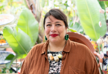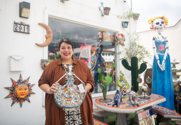 Claudia Berumen, nacida y criada en Santa Bárbara, California, es una estadounidense de primera generación de familia mexicana con raíces en Zacatecas muy apegada a su comunidad. Además de trabajadora cultural y facilitadora de talleres, es una persona creativa que imbuye todos los espacios que dirige de cordialidad, tradición y alegría. Con más de una década de experiencia en el ámbito de los servicios sociales y con una sólida base como líder servidora y en la provisión de psicoterapia centrada en los traumas sufridos por aquellos a los que trata, Claudia actualmente dirige junto a su esposo, oriundo de Oaxaca, Alebrije Talleres y Tesoros, una tienda de propiedad familiar de artículos para el hogar y el jardín en la que se festeja la riqueza de la artesanía y cultura mexicana. En sus talleres Claudia convida a personas de todas las edades a sanar, crear y reconectar, sea con su creatividad, comunidad o consigo mismas.