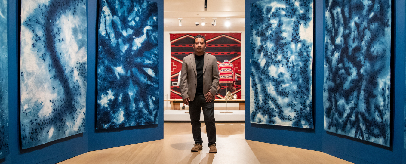 An internationally known and exhibited artist based in Ventura, CA, Porfirio Gutiérrez has taught materials and color at Harvard University, and serves as Fellowships Advisory for the Smithsonian. His work is in the collection of LACMA, Los Angeles County Museum, the Smithsonian’s National Museum of the American Indian, and the Tucson Museum of Art. A selection of his dye materials was also documented and added to Harvard Art Museums’ Forbes Pigment Collection, the world-renowned archive of artist materials. In 2015, he received the Smithsonian Institution’s Artist in Leadership fellow, in 2021 he received the Carolyn Glasoe Bailey Foundation Art Prize, and in 2023 he was the finalist for Frieze Art Prize. His work has been covered by ARTnews, The New York Times, PBS, the BBC, Vogue, and Artforum.