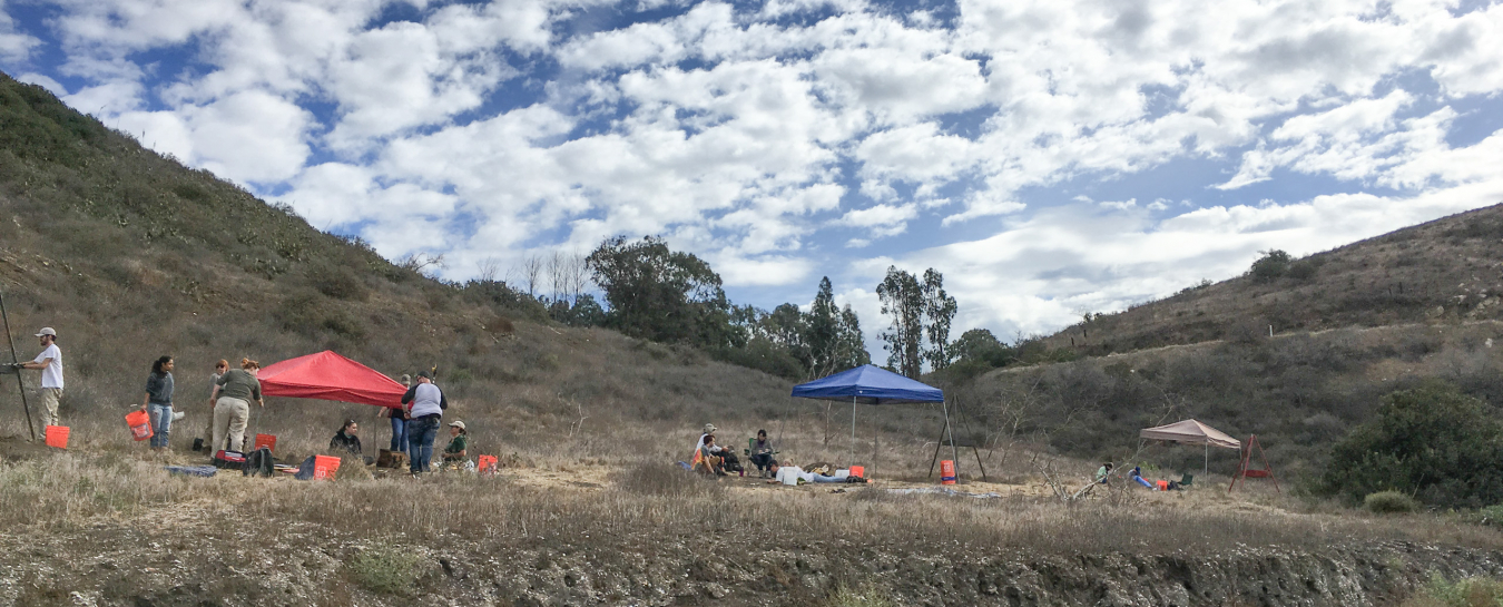 As part of a field methods class in archaeology, Moorpark students excavated several 1x1 meter testpits, implemented a site mapping project using GPS data coupled with Google Earth images and aerial photos, and analyzed artifacts in the lab. Researchers collected marine shell fragments specifically for dating purposes and have produced 45 new radiocarbon dates.