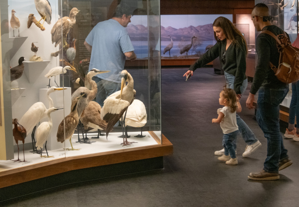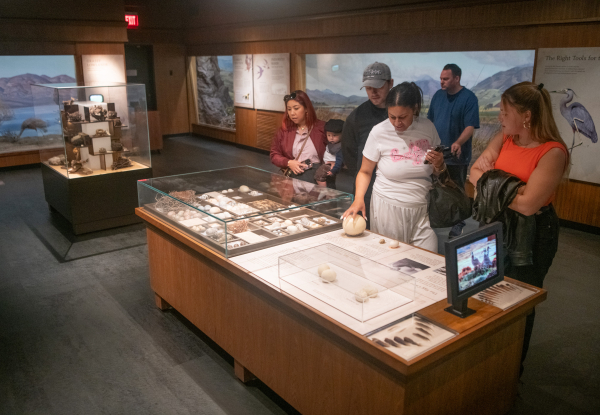 Just a few steps beyond is the Bird Habitat Hall, where dozens of species are displayed in their native habitats. This entire hall was updated in 2018, with new stories, new interactives, and some of our favorite touchable objects. There’s even a place where you can learn to dance like a crane.